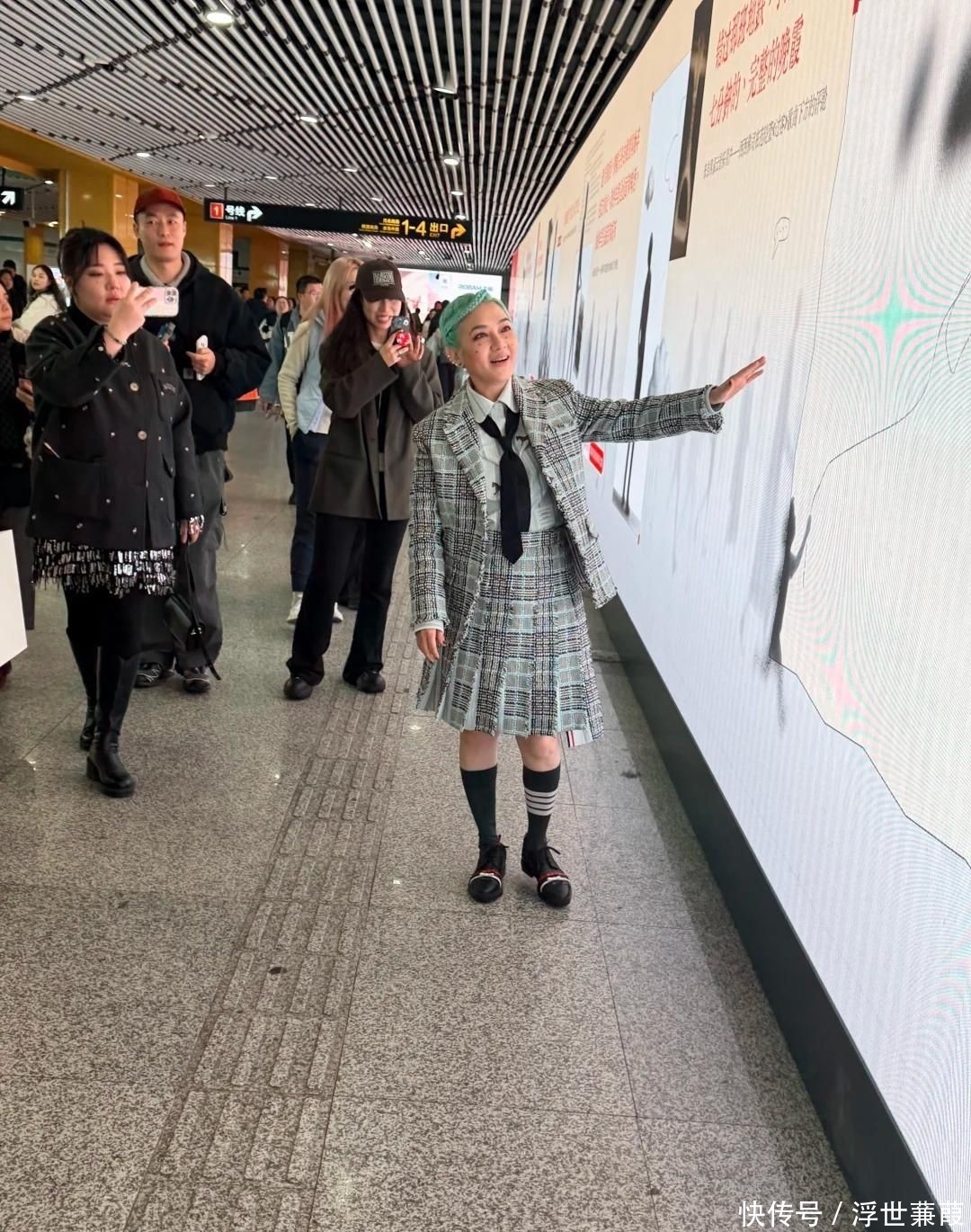最近在上海地铁站的人流中,一个绿色短发的身影悄然出现,意外引发路人侧目。