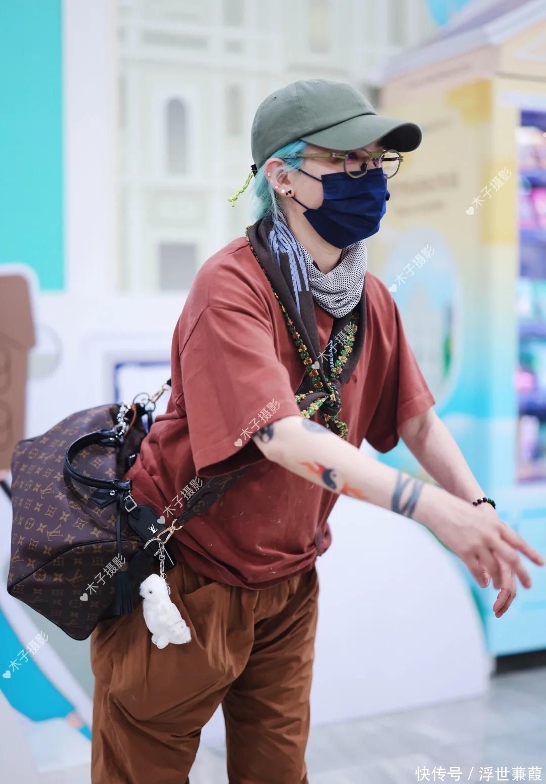 然而细看之下,仍能发现诸多独特之处:一头蓝色短发、耳垂上的五个耳洞、手臂上若隐若现的纹身图案,处处透露出不羁个性。